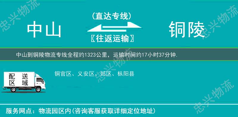 忠興物流全力打造中山同類型運(yùn)載效率快速、質(zhì)量高、價格優(yōu)、貨損貨缺理賠及時、后續(xù)服務(wù)完善的綜合物流體驗(yàn),誠摯助力客戶新發(fā)展,在提供*運(yùn)輸服務(wù)的同時我司還考慮到客戶有從周邊城市發(fā)往銅陵的貨物。